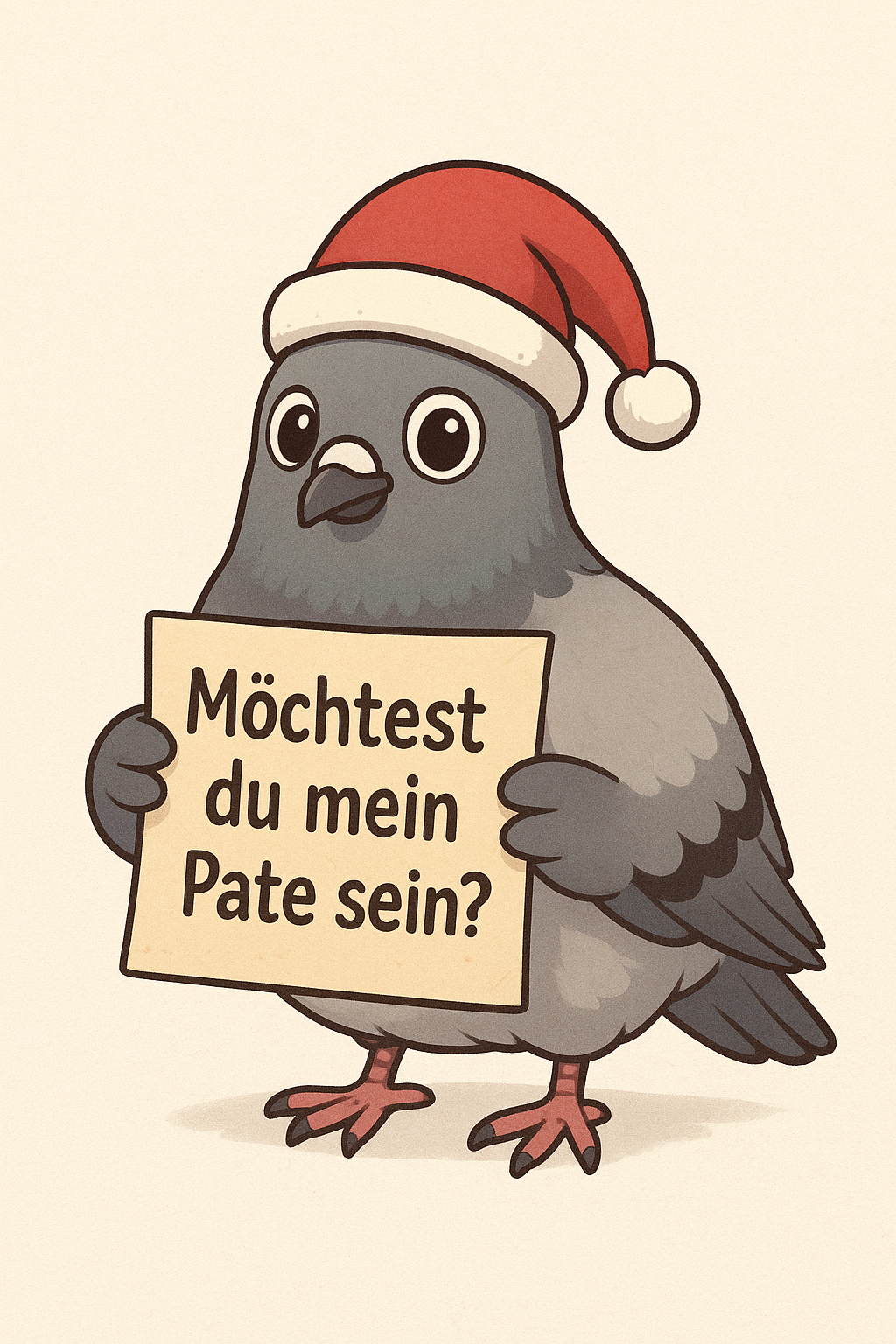 Dabei kannst du wählen zwischen einer Patenschaft für ein Täubchen oder eine Monatsration Futter. Auf unserer Patenschaftsseite stellen wir viele Täubchen vor, die stellvertretend für ihre gefiederten Kollegen für ein sicheres Zuhause in einer unserer Handicapvolieren sorgen. Oder du verschenkst eine Futterpatenschaft für leckere Körnchen. Selbstverständlich kannst du dir die Patenschaft auch selbst schenken.