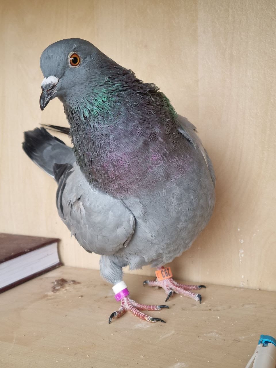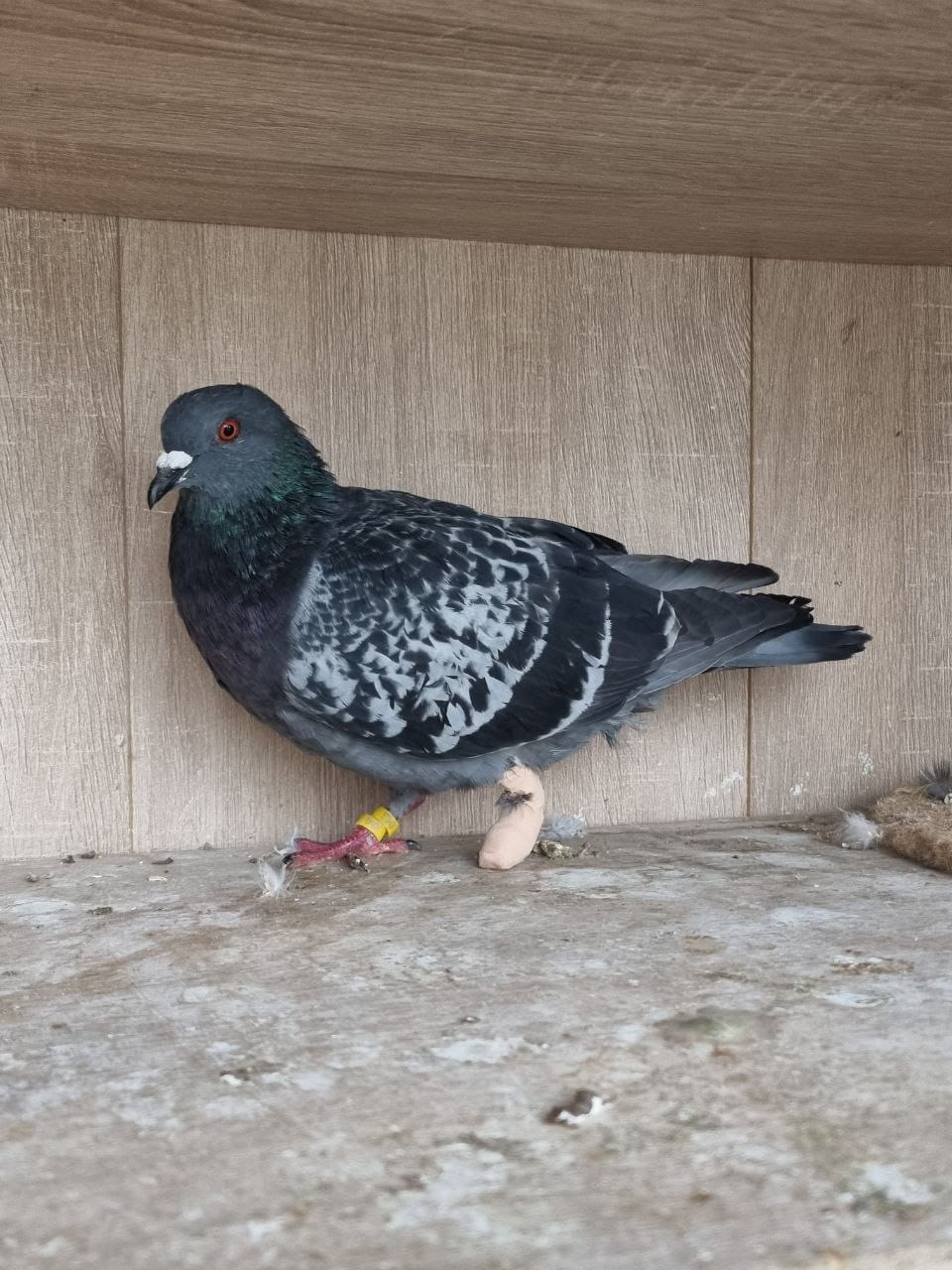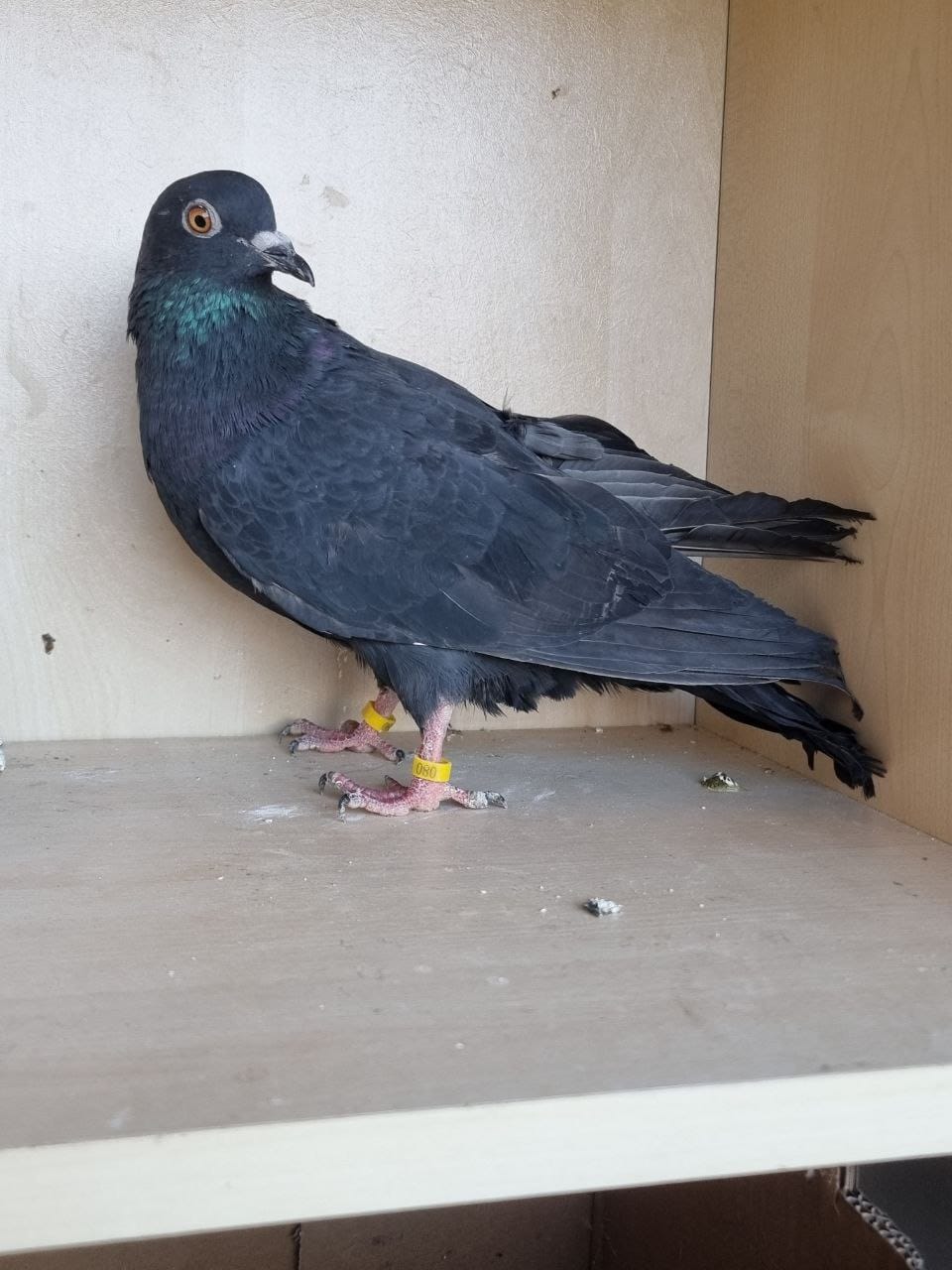 Clarisse wurde flugunfähig in einem unserer Taubenschläge durch einen aufmerksamen Helfer entdeckt. Da sie das Fliegen nie wieder richtig geschafft hat, darf sie jetzt bei uns bleiben.