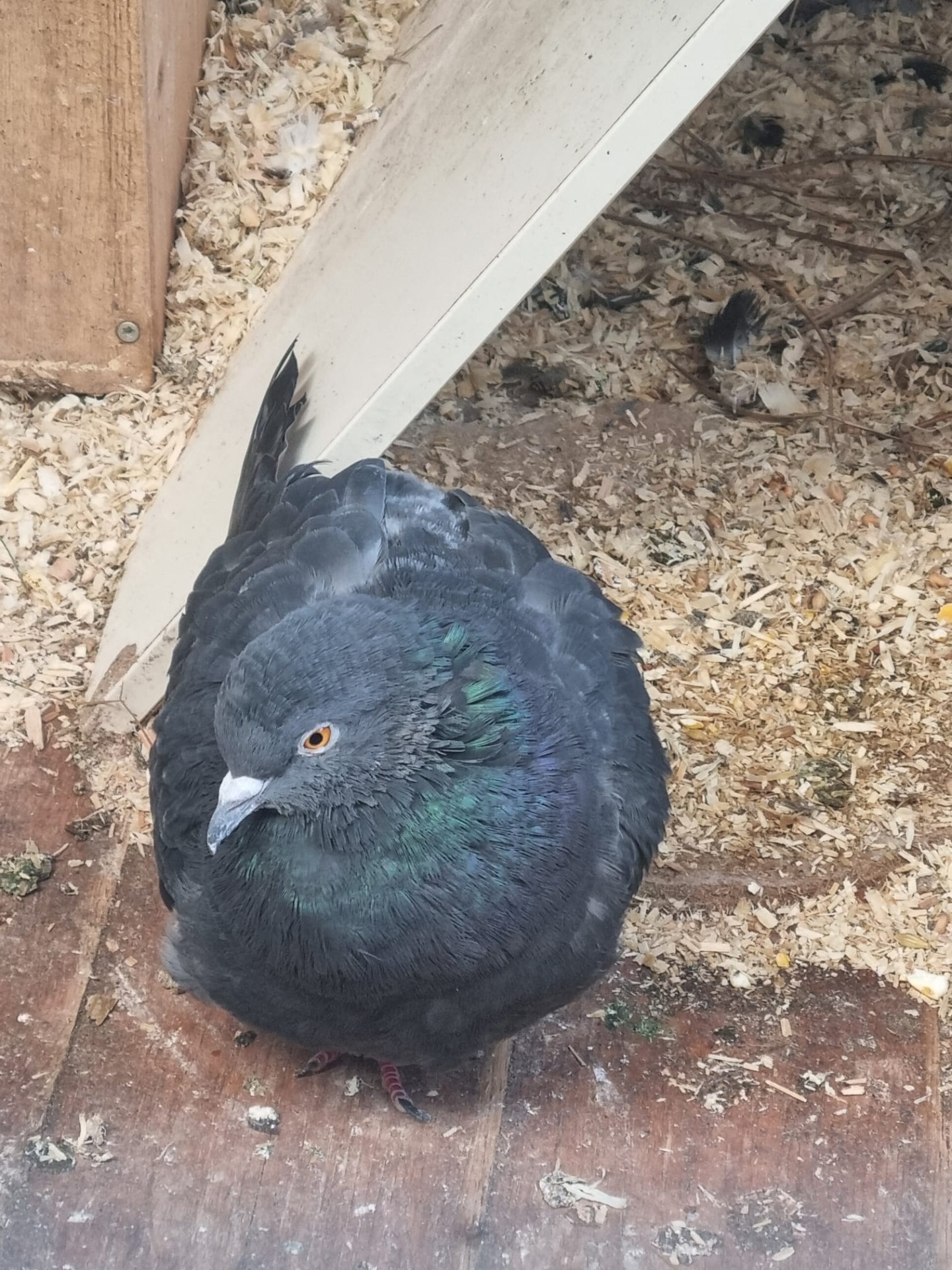 Kjeld kann nicht fliegen und ist ein ruhiges stilles Täubchen, das in der Voliere aber gut zurecht kommt.