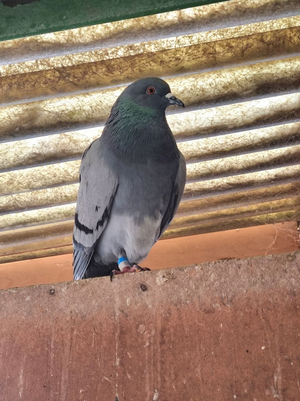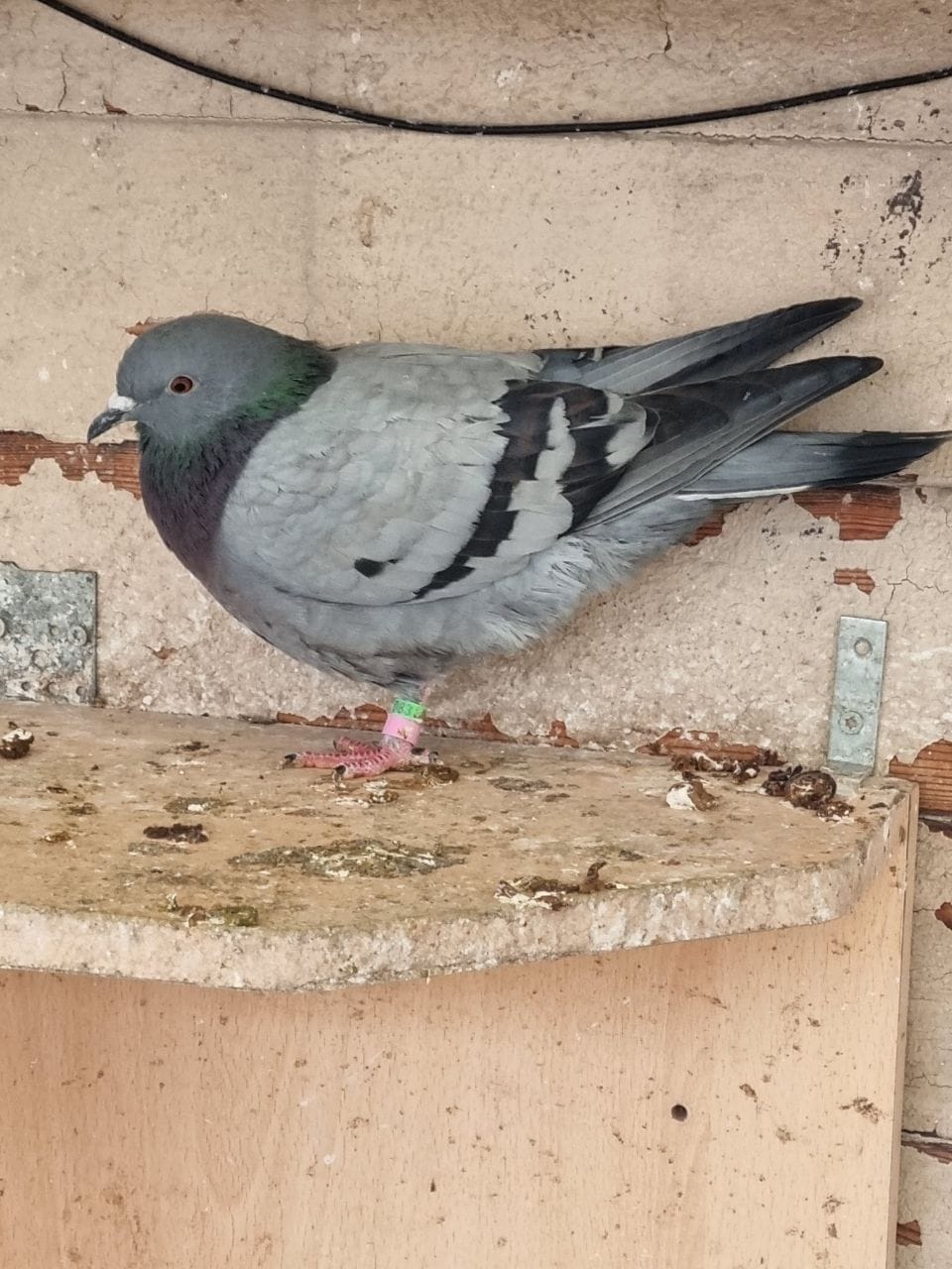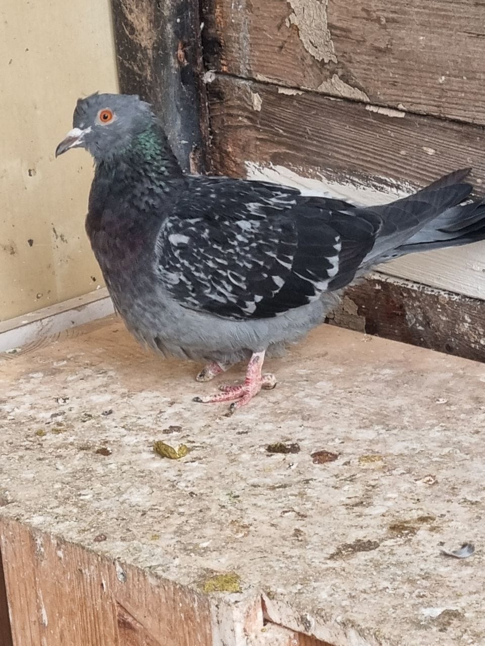 Momo reiht sich in unsere Spreizbein-Riege ein. Er trägt ebenfalls noch eine Fußfessel. Durch die Operationen können die Tauben ein halbwegs normales und aufrechtes Leben führen.